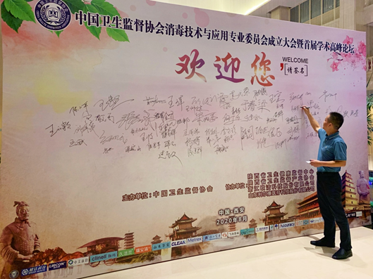 2020年8月25日,中国卫生监督协会在西安举办了,消毒技术与应用专业委员会成立大会,暨首届学术高峰论坛。v23威尼斯检测中心主頁科技作为消毒技术与应用专业副主任委员之一,成为本次会议的协办单位。